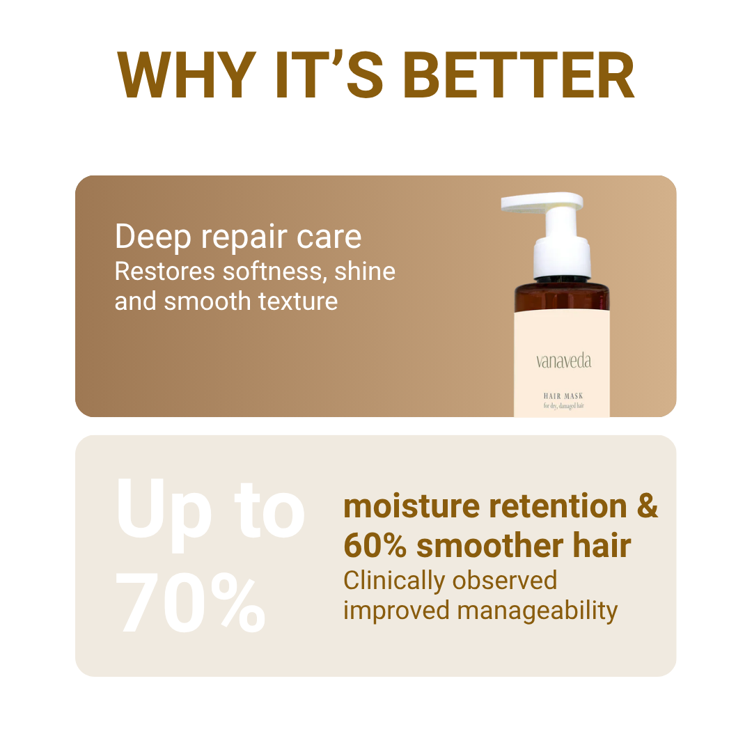 Powered by Vanaveda’s proprietary Rasa phyto delivery technology, the mask enhances botanical absorption and performance for deeper hair fiber nourishment. Clinical evaluation recorded up to seventy percent improvement in moisture retention and sixty percent improvement in softness and manageability over a monitored six month period.